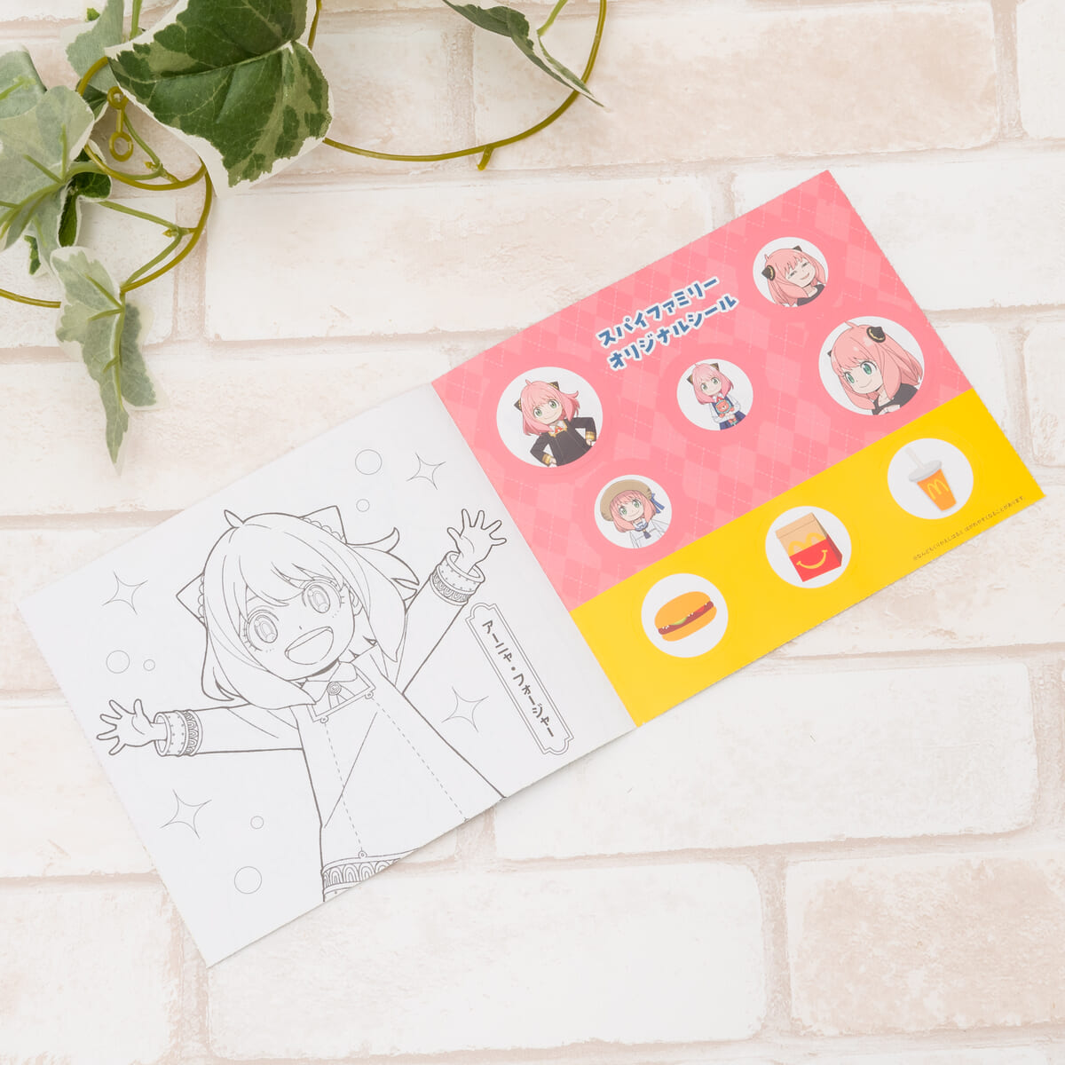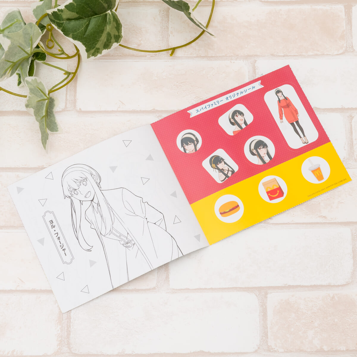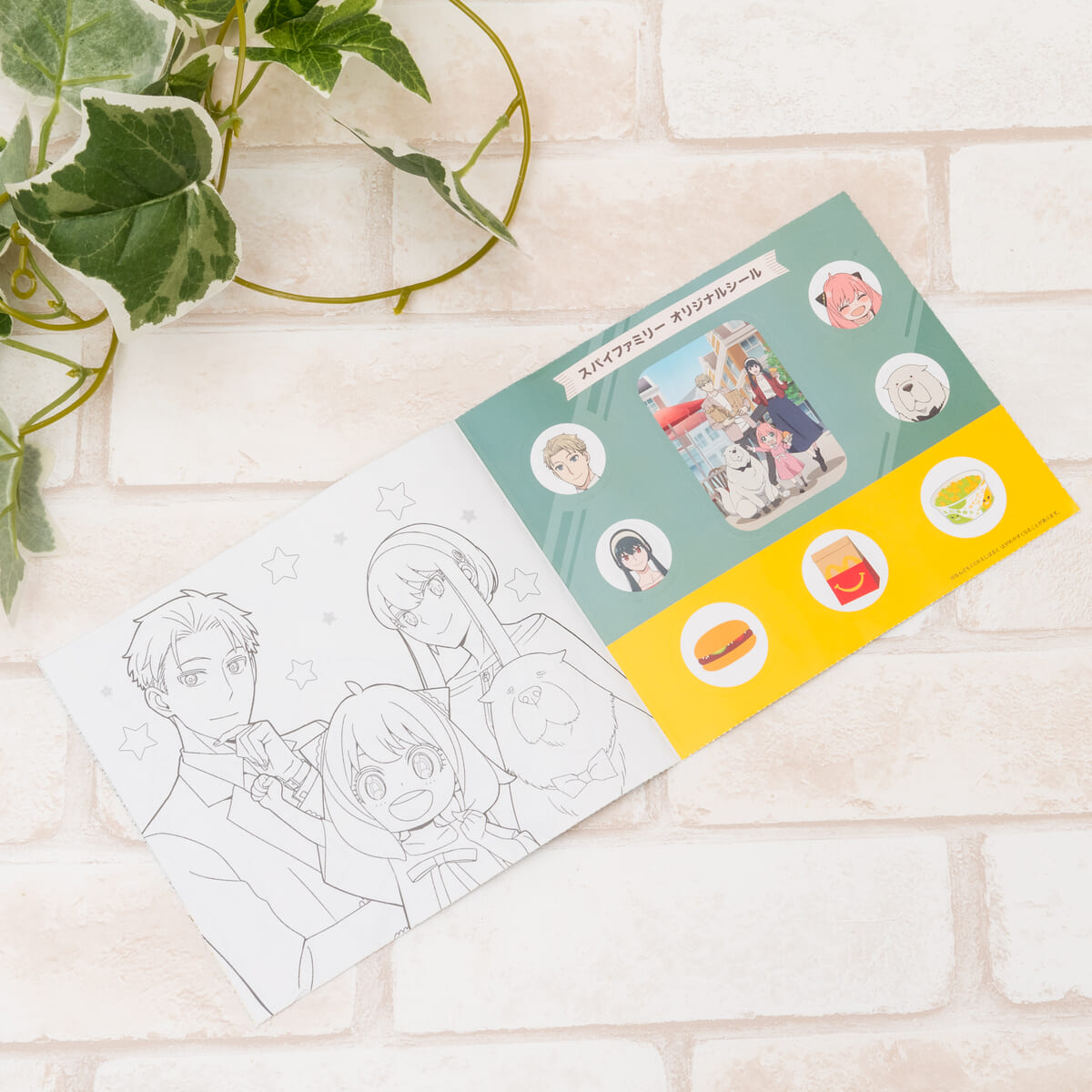 「ロイド・フォージャー」「アーニャ・フォージャー」「ヨル・フォージャー」がデザインされた、ぬりえとシールがセットになったオリジナルブック。