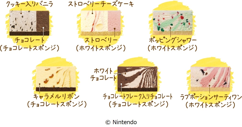 さらに、おなじみのキャラクターたちやアイテムをイメージした、まるでゲームの世界から飛び出したようなサンデーやバラエティボックス、アイスクリームケーキなどをラインナップ☆