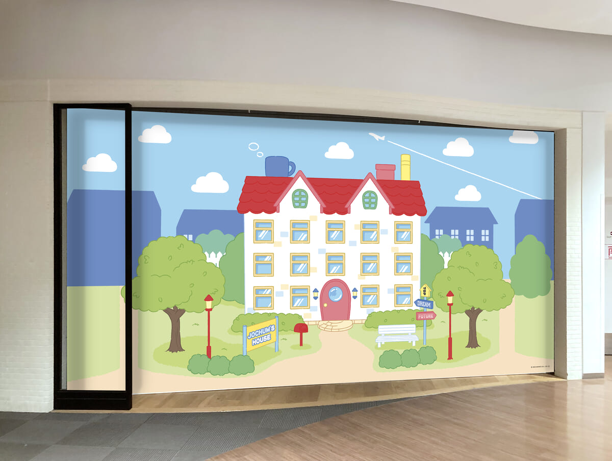 期間中、「JOCHUM」の仲間たちが描かれた装飾やフォトパネルがエントランスや館内各所に登場。