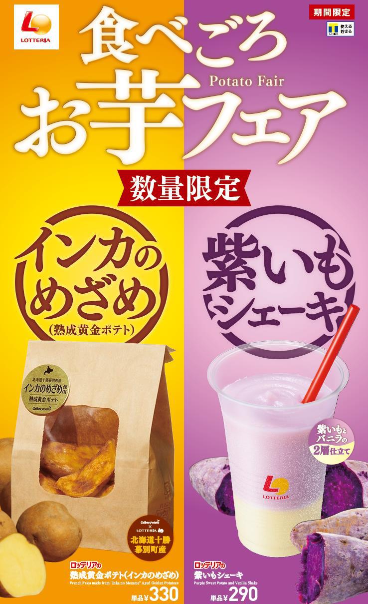 熟成黄金ポテト(インカのめざめ)&紫いもシェーキ!ロッテリア「食べごろお芋フェア」