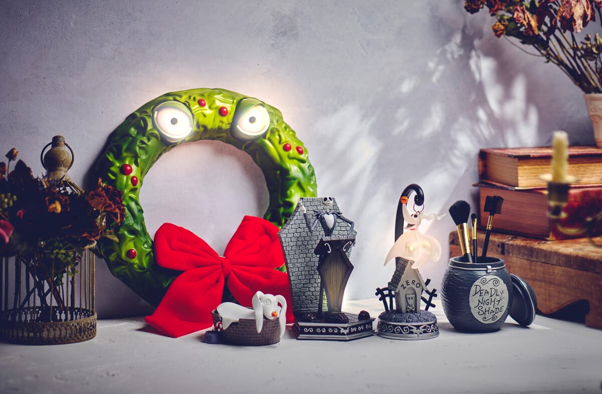 また「ジャック・スケリントン」や「ゼロ」をモチーフにしたLEDライト、“イヌホオズキ”の壺をモチーフにしたメイクブラシスタンドなどは、作品の世界観を忠実に再現したストーリーテリングなグッズになっています。