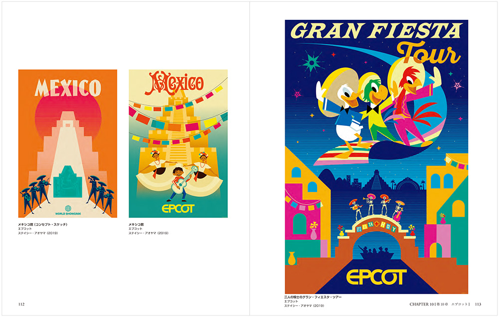 また、一度は行ってみたい、ウォルト・ディズニー・ワールドのエプコットの魅力的なポスターも多数掲載。