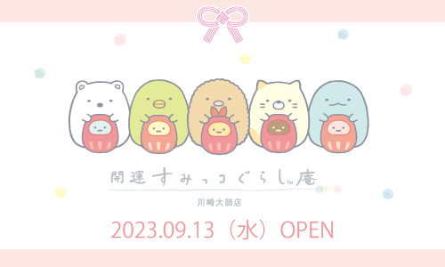 2023年9⽉13⽇(水)より、神奈川県・川崎大師にオープンする「開運すみっコぐらし庵 川崎大師店」の紹介でした☆