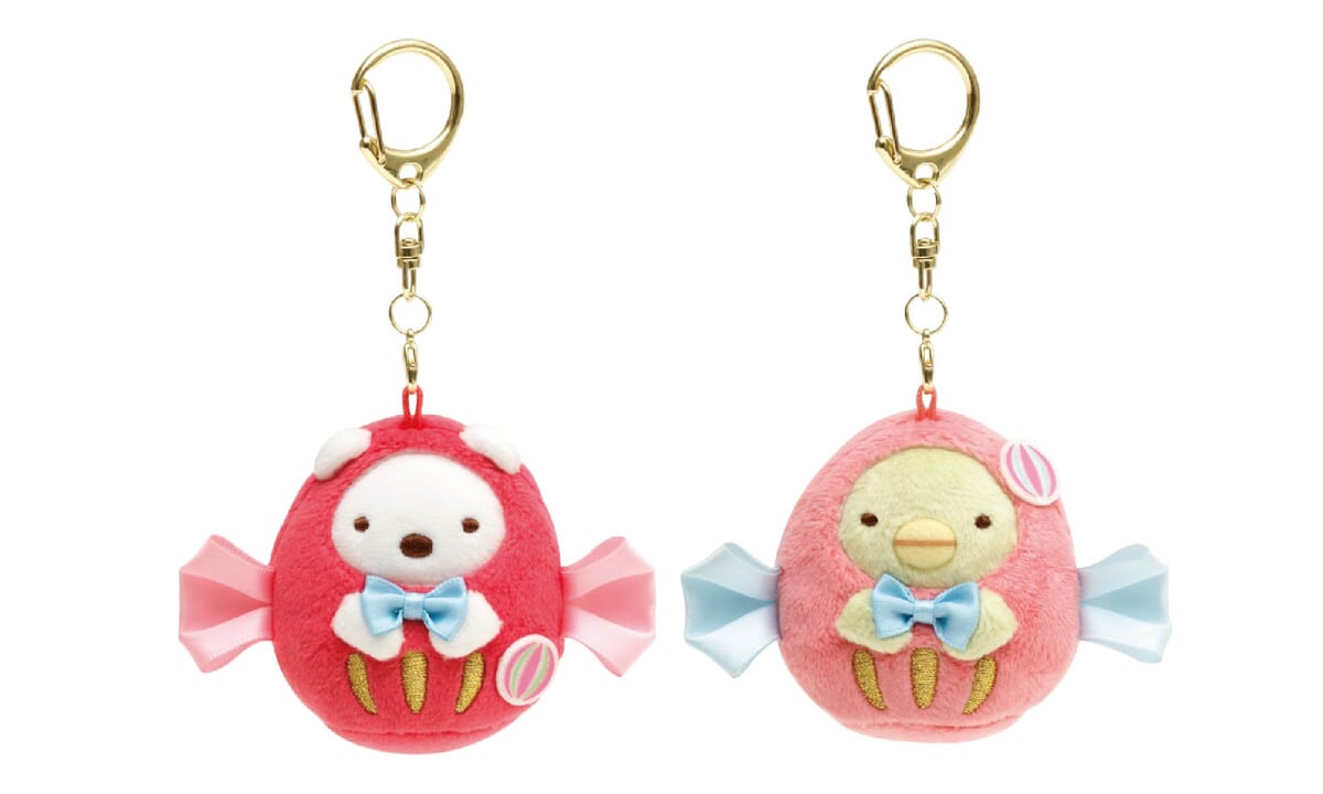 川崎大師っぽい だるま&飴スタイルの「しろくま」と「ぺんぎん?」のぶらさげぬいぐるみ。