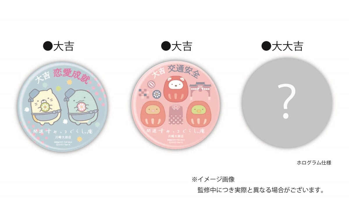 「開運すみっコぐらし庵 川崎大師店」のオープンを記念して、ノベルティ缶バッジのプレゼントを実施。