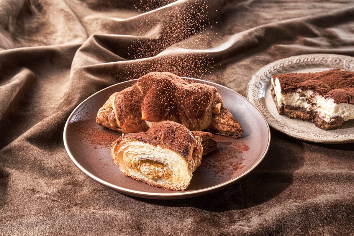 『プレミアムチョコクロ コーヒーティラミス』のために開発したコーヒー味のチョコレートをサクサクのクロワッサン生地で包み込み、香り高いコーヒーソースと、2種類のチーズを混ぜ合わせたクリームをトッピングし焼き上げてあります。
