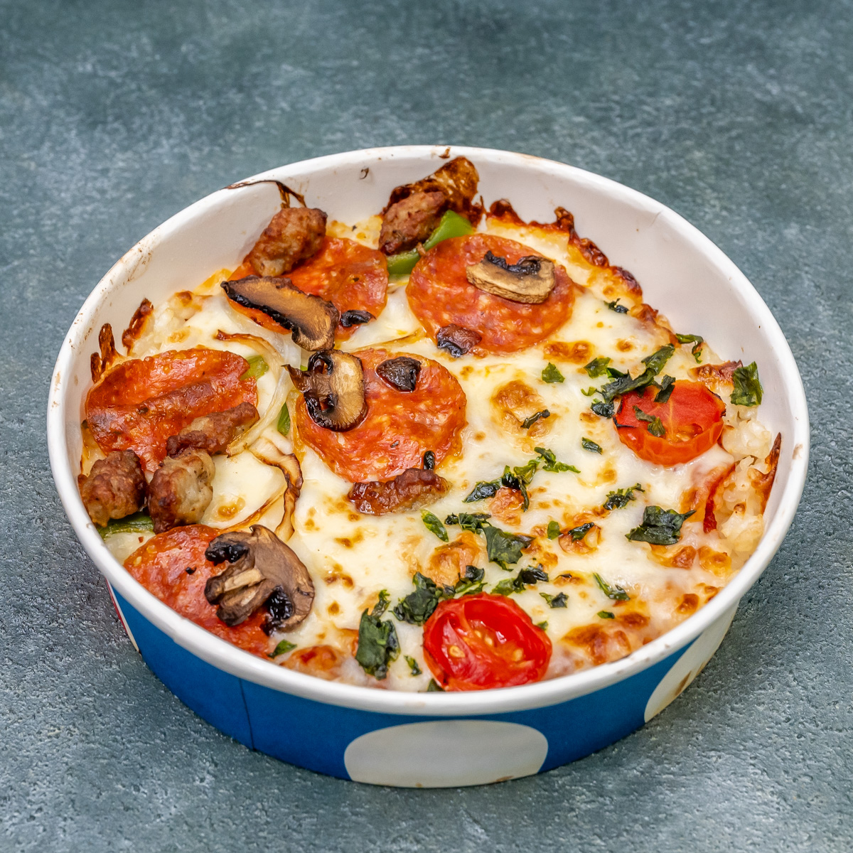 ※2023年9月より、ピザライスボウルの容器がアルミから紙容器に変わりました。一部店舗によってはアルミ容器が提供される場合があります