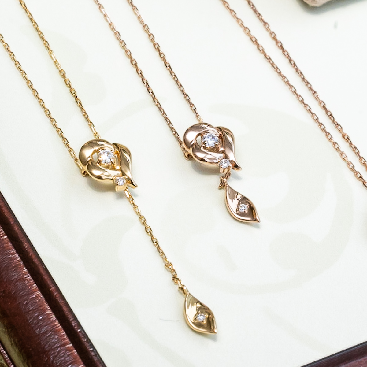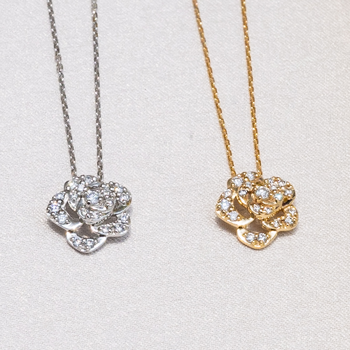 ネックレス 66,000円(K18PG,ダイヤモンド)/66,000円(K18G,ダイヤモンド)