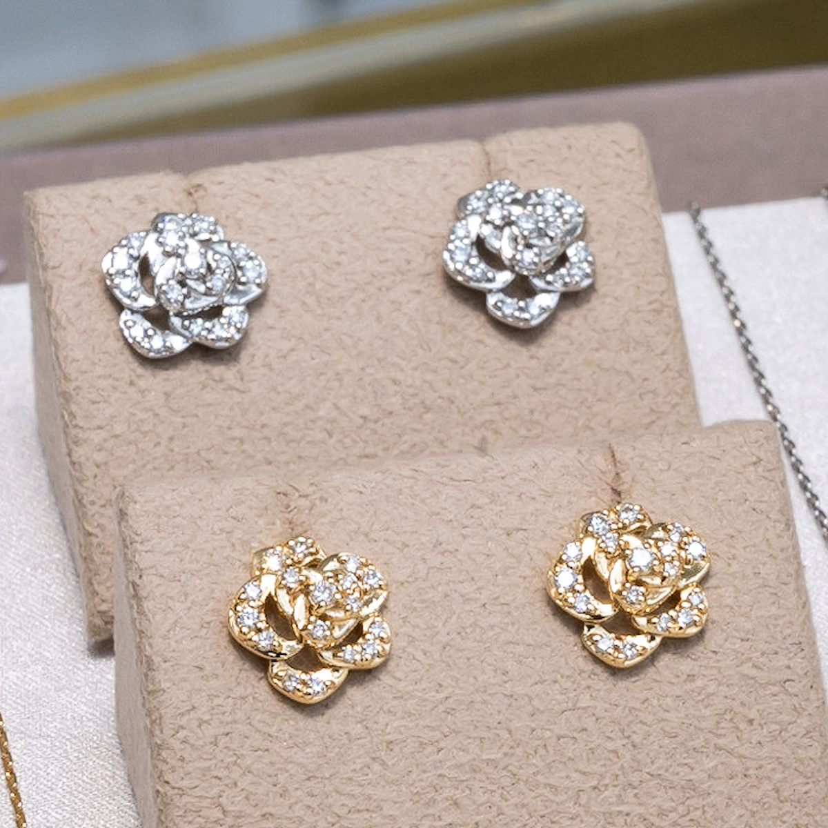 花びらに敷き詰めたダイヤモンドのきらめきで、可憐な美しさを表現したデザインも。