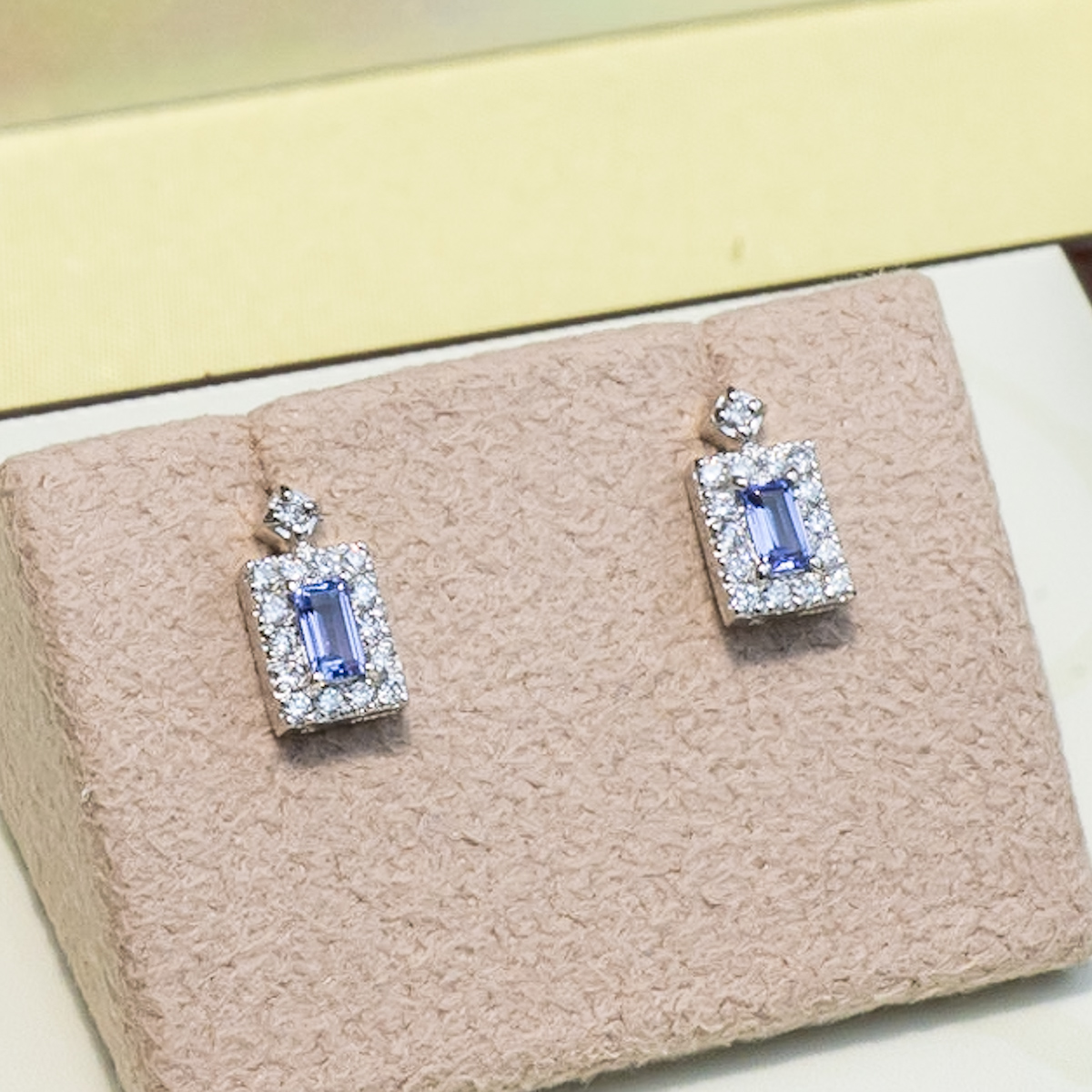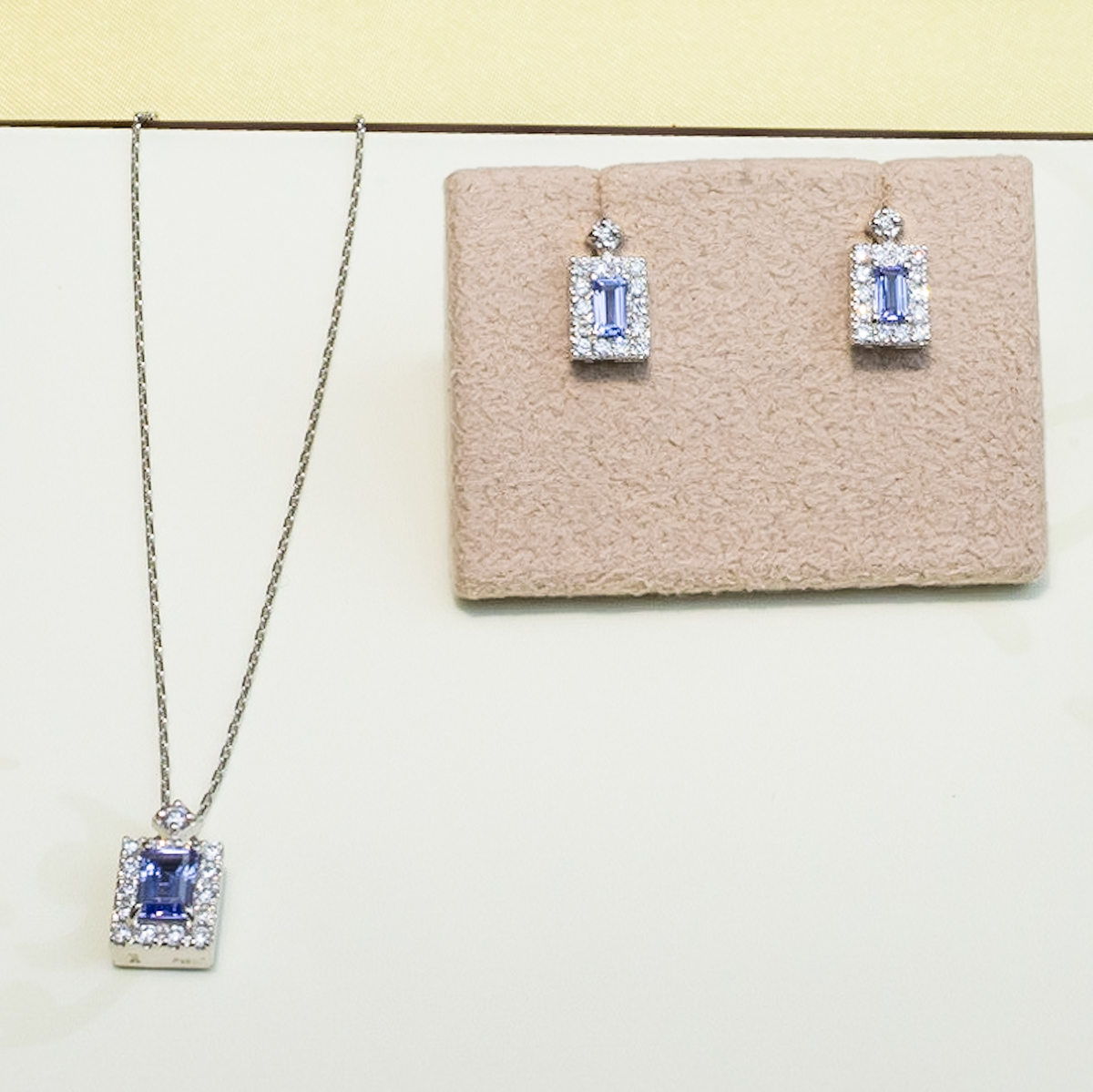 白く純粋に輝くプラチナにあしらったのは、青く美しいタンザナイトときらめくダイヤモンド。