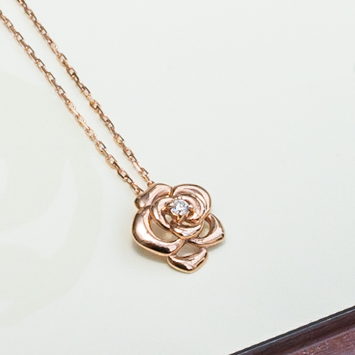 華奢なチェーンの先で揺れるのは、はらりと散った花びら。