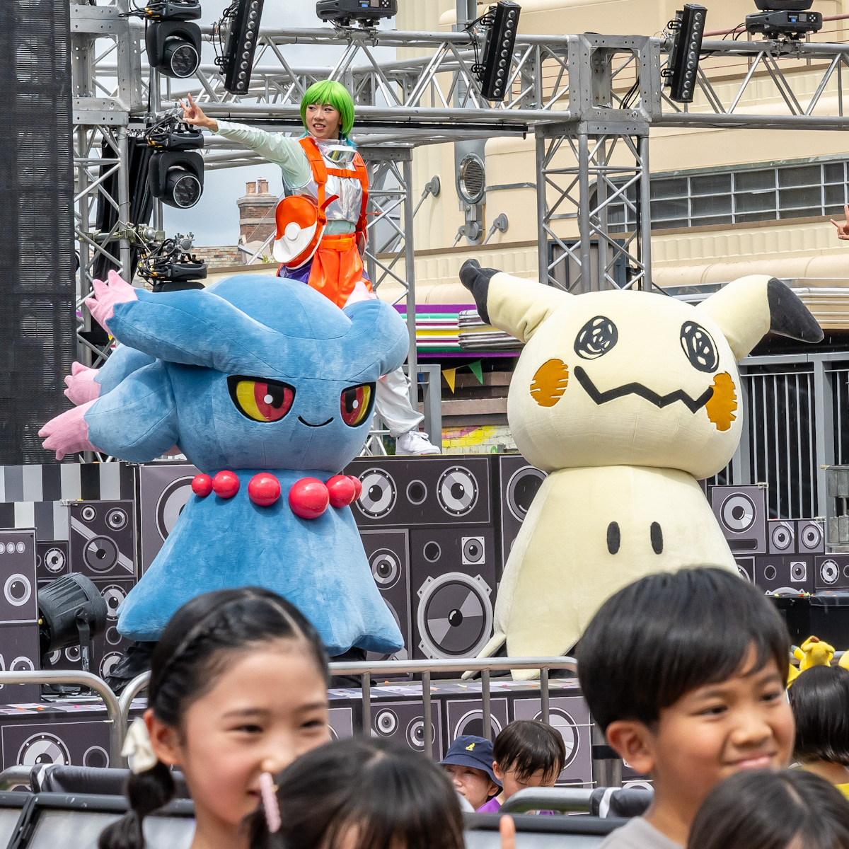 軽快なビートの音楽と、ド派手な映像に合わせて、ポケモンの世界観に没入し、一緒に踊ることができる日本初のデータイムショーです。