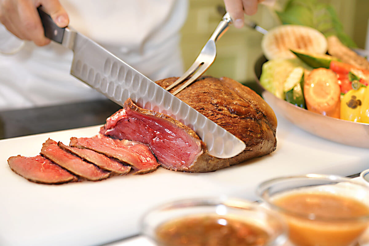 やわらかな食感のローストビーフを切り分けて好きなだけいただけます。