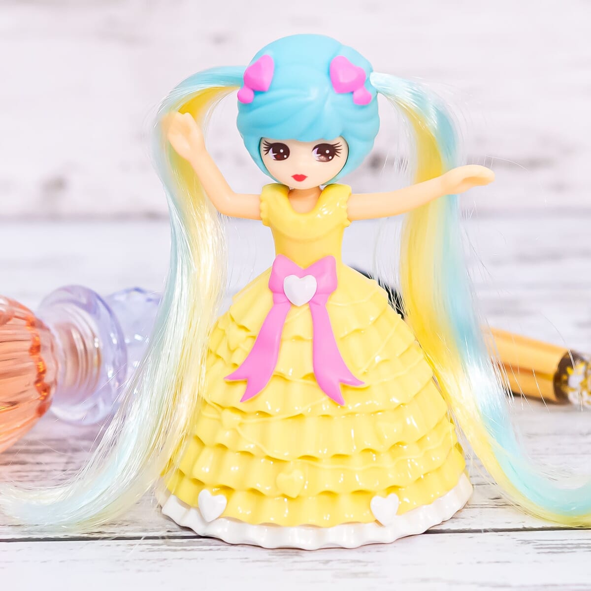 ピンクと黄色の長い髪を活かしたヘアアレンジが自由にできます。