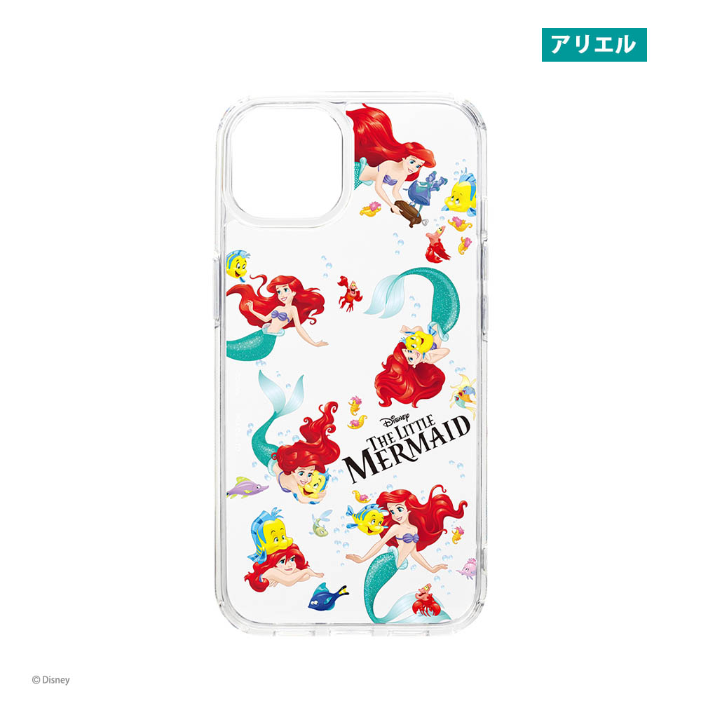 『リトル・マーメイド』のディズニープリンセス「アリエル」と、お友だちの「フランダー」たちが描かれたクリアハイブリッドケース。