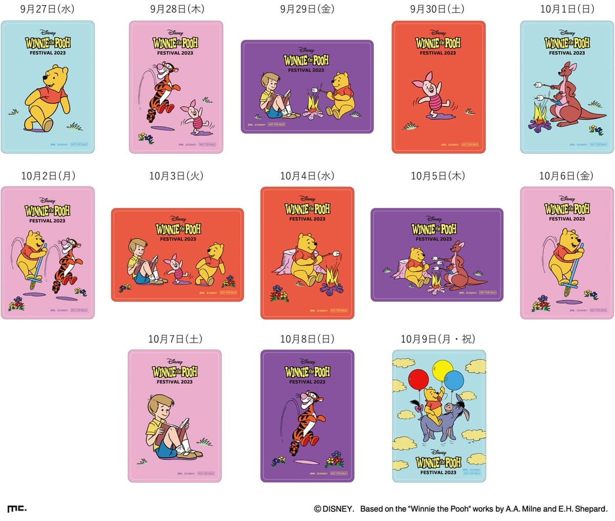 ステッカーデザインは「くまのプーさん」や「ピグレット」「ティガー」「クリストファー・ロビン」など毎日異なるデザイン。