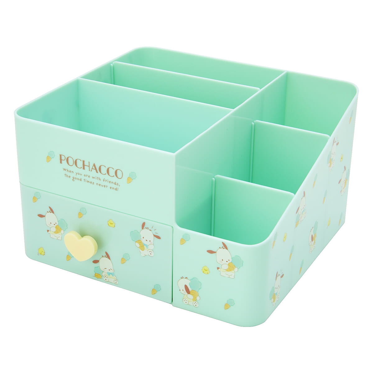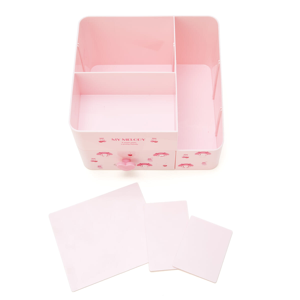 キャラクターのイラストがデザインされたコスメ収納ボックス。