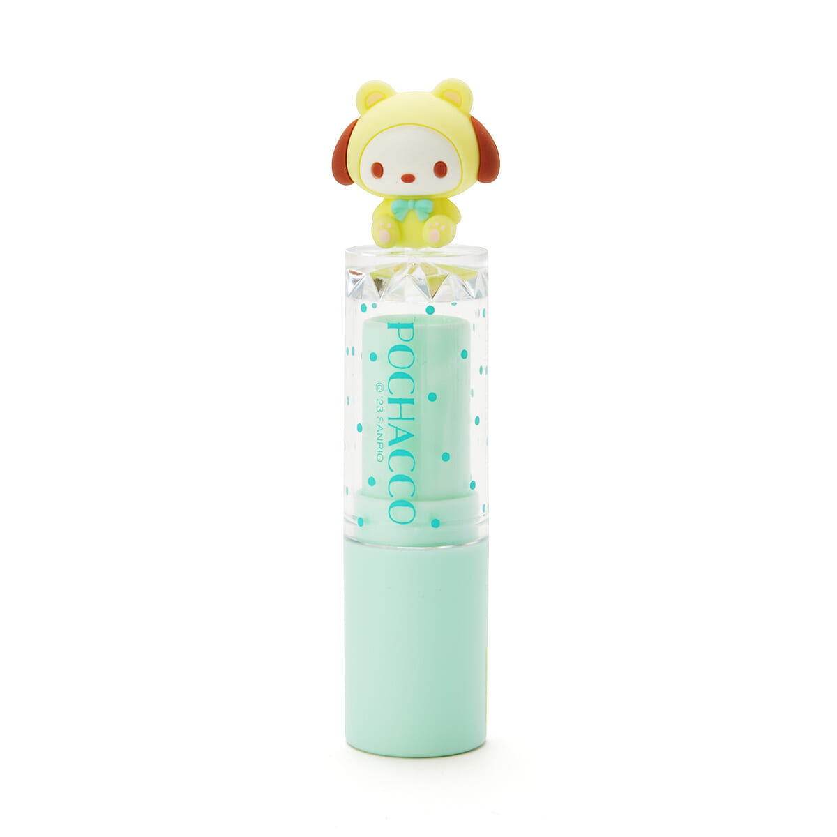 くまの衣装に身を包んだ「ポチャッコ」のマスコット付きリップクリーム。