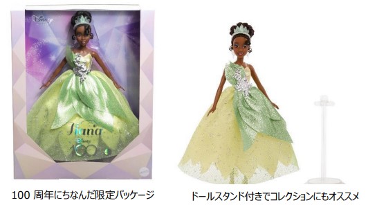 ディズニー映画『プリンセスと魔法のキス』に登場するディズニープリンセス「ティアナ」のディズニー100テーマコレクタドールです。