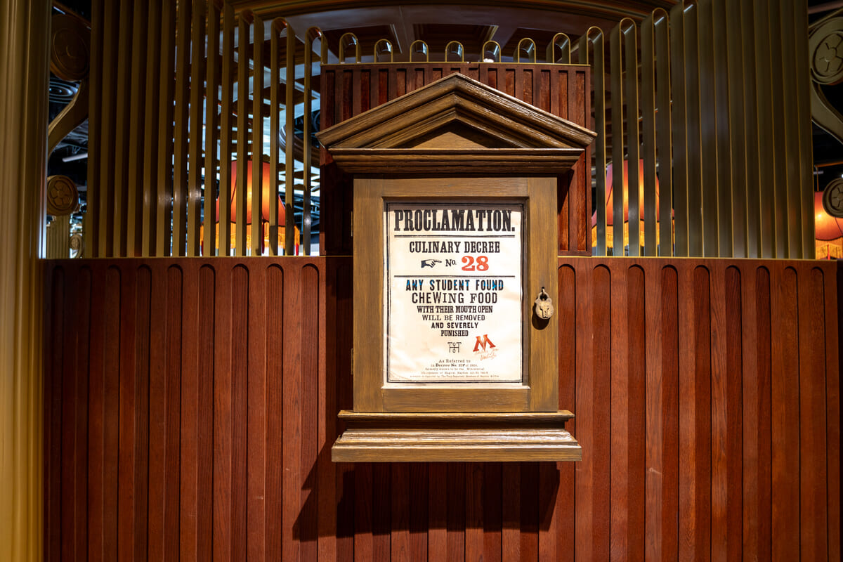 スイーツや薔薇での装飾に加え、「食」にまつわるホグワーツの教育令が掛けられていて、「ドローレス・アンブリッジ」を表した細かな演出が散りばめられた内装もこだわりのポイントです☆