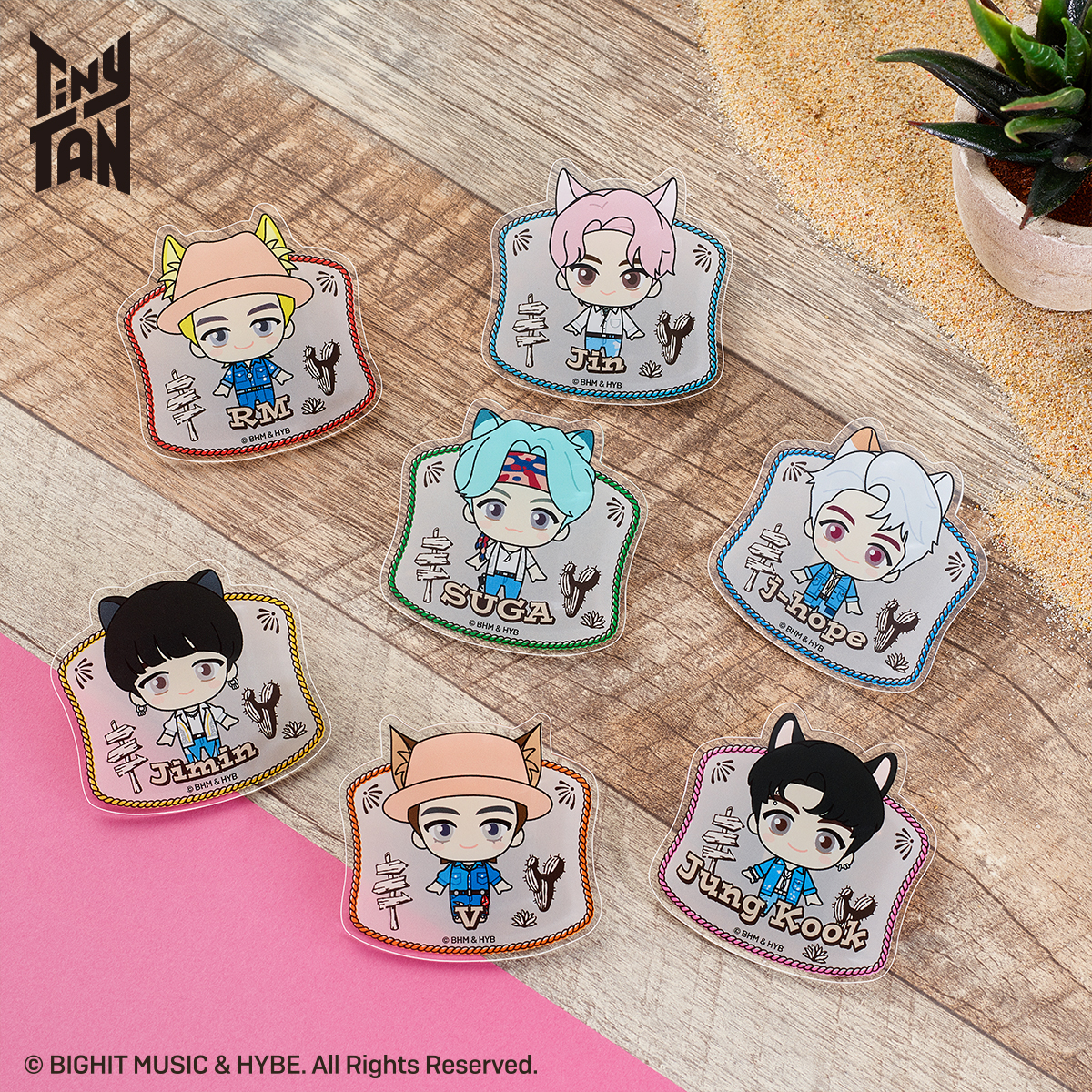 「TinyTAN」7人が並んだデザインのクッションや、コレクションしたくなるアクリルスタンド、ホログラム缶バッジ、ダイカットステッカーが登場。
