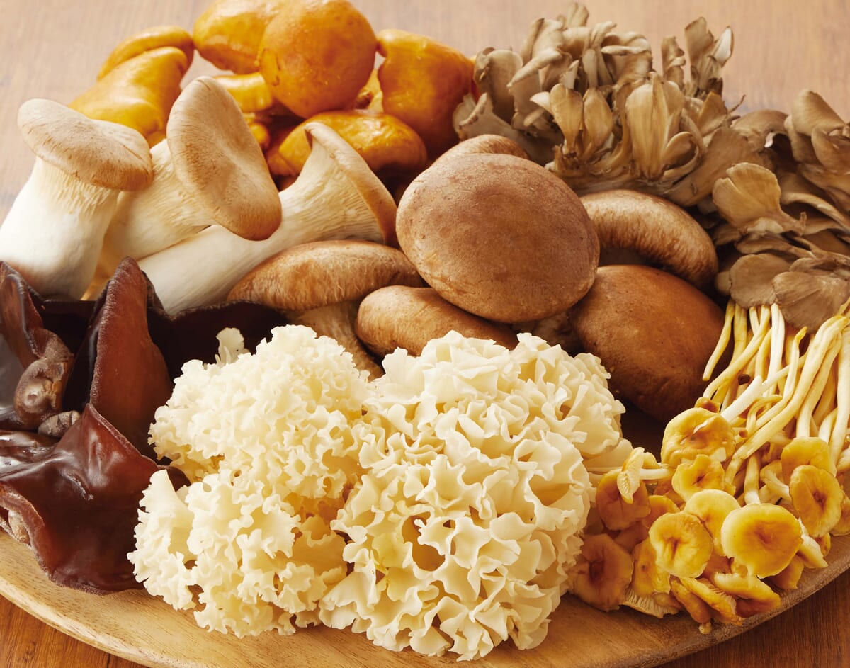 ”鴨しゃぶ”と共に味わえるのは「生きくらげ」「エリンギ」など全7種のきのこ。