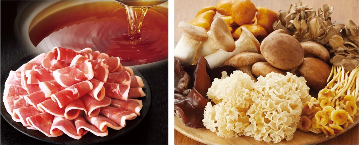 2022年の期間限定メニューで注文数No.1を記録した”鴨しゃぶ”と、自然界では幻のきのこと呼ばれる「花びら茸」など全7種のきのこが食べ放題で楽しめます☆