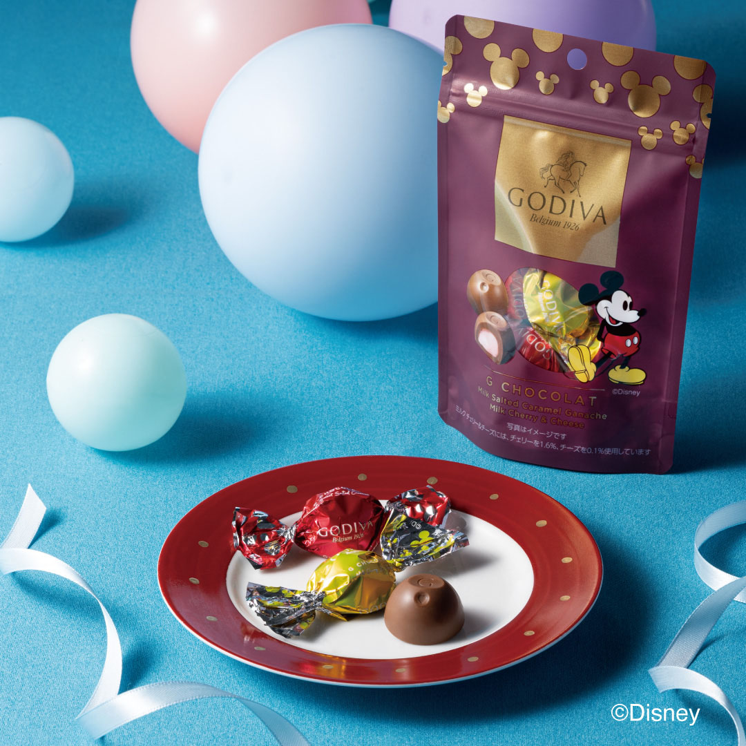 「ミッキーマウス」デザインの「G ショコラ」や、カジュアルに楽しめるゴディバのチョコレート。