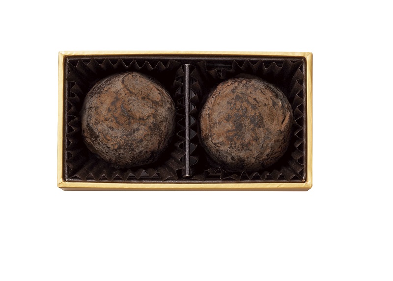 軽やかなくちどけのミルクチョコレートムースをダークチョコレートで包み、ほろ苦いココアパウダーでコーティングした「トリュフ トラディショナル」を2粒詰め合わせ。