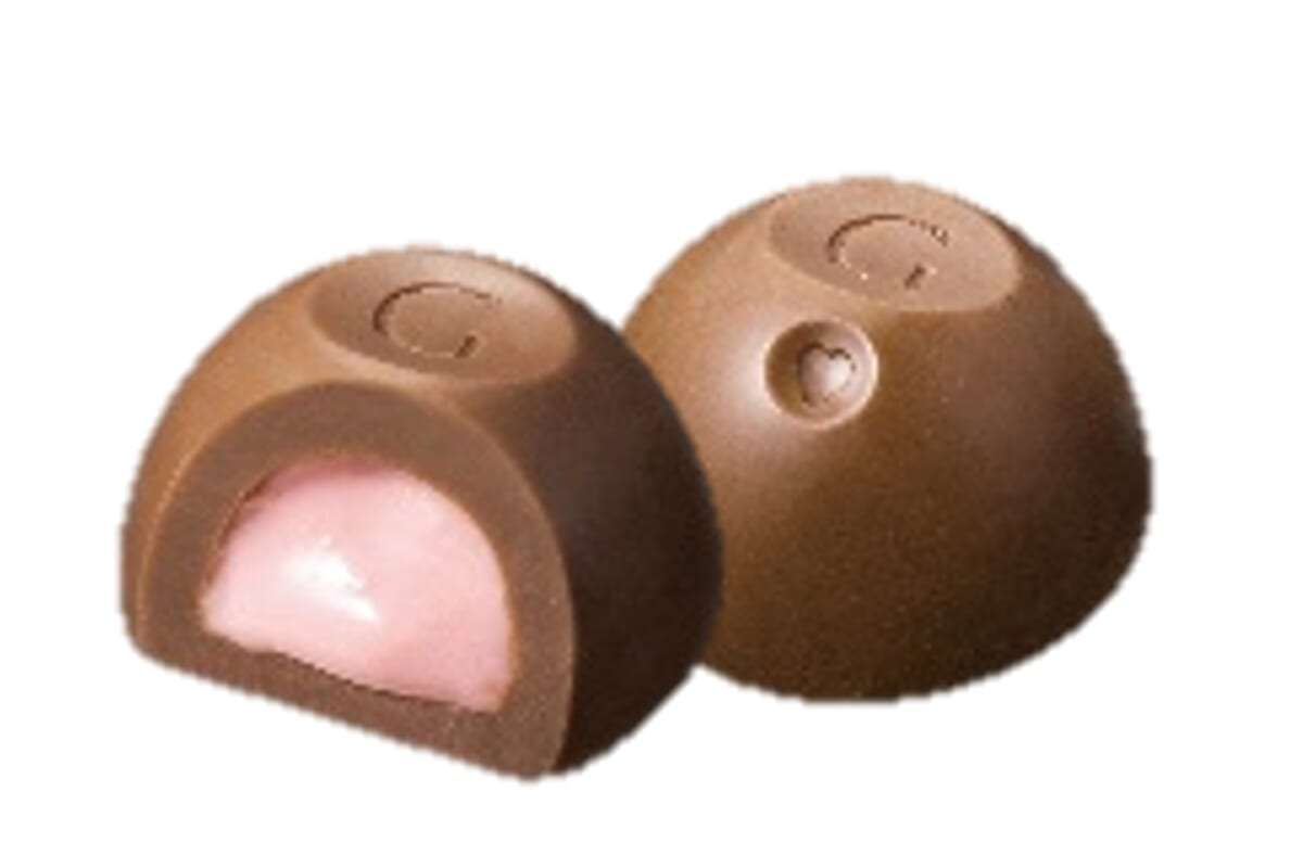ゴディバのアイデンティティを表すGのマークと、ゴディバの代表的なチョコレート「クール」のハートの形がチョコレートにさりげなくデザインされています。