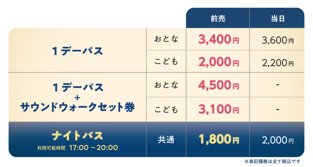 ・1デーパス+サウンドウォークセット券 おとな4,500円、こども 3,100円