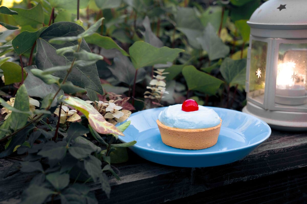 「青い帽子のタルト」は、見た目も可愛いデザートメニューです。