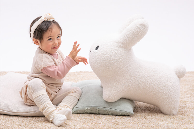 子どもだけでなく、大人も抱きしめたくなる触り心地は、ぬいぐるみとは違う感触の癒やしのグッズとして側にいて欲しい存在です。