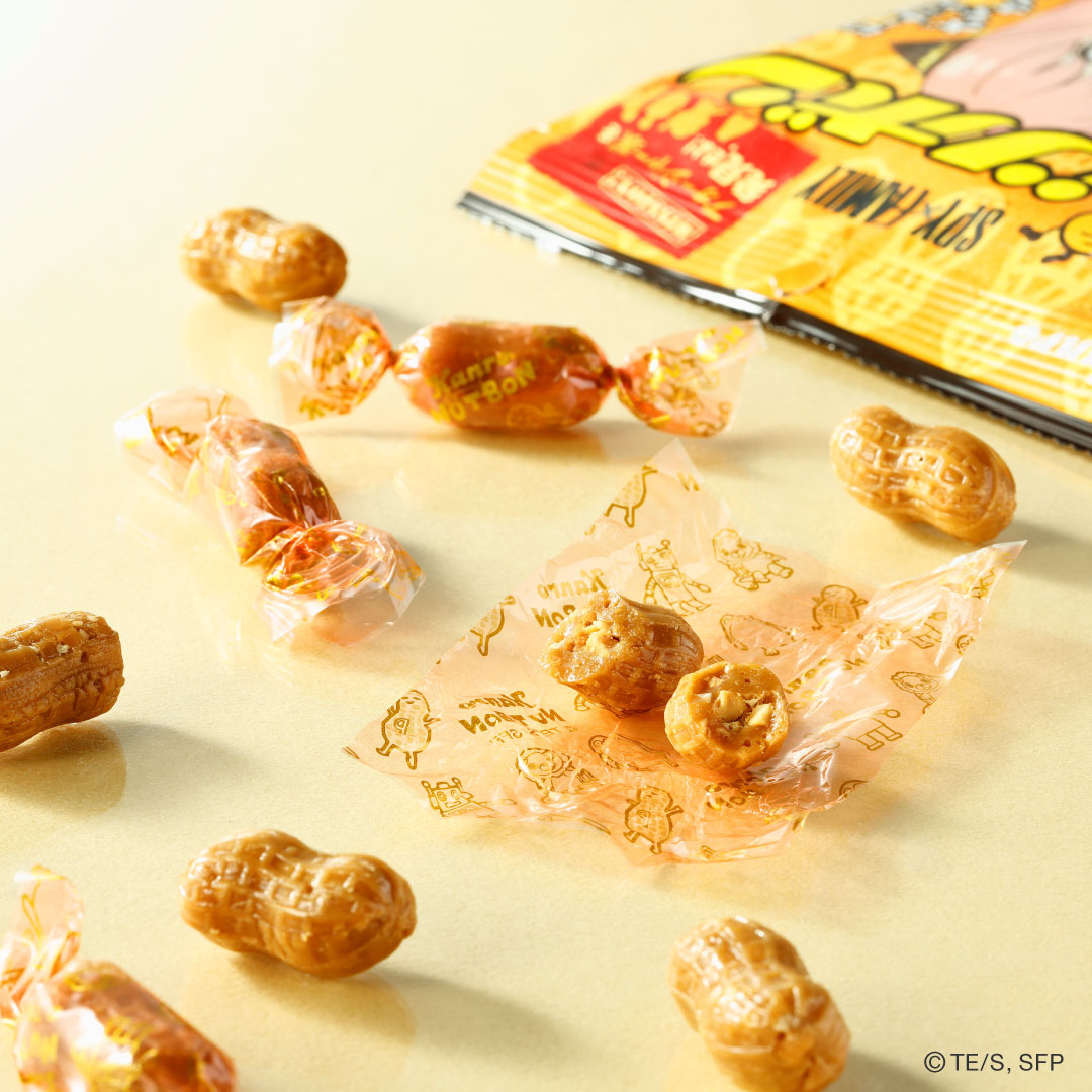 パッケージに描かれているTVアニメ『SPY×FAMILY』の登場キャラクター「アーニャ・フォージャー」の好物がピーナッツであることをきっかけに、オリジナルパッケージでの発売が実現しました☆