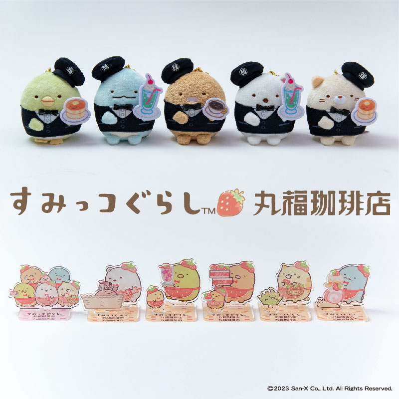 コラボグッズ「丸福珈琲店×すみっコぐらし ぶらさげぬいぐるみ」「丸福珈琲店×すみっコぐらし アクリルスタンド」