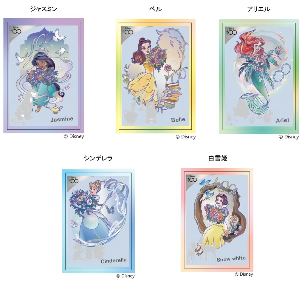 カードは「ジャスミン」「ベル」「アリエル」「シンデレラ」「白雪姫」の5種類。
