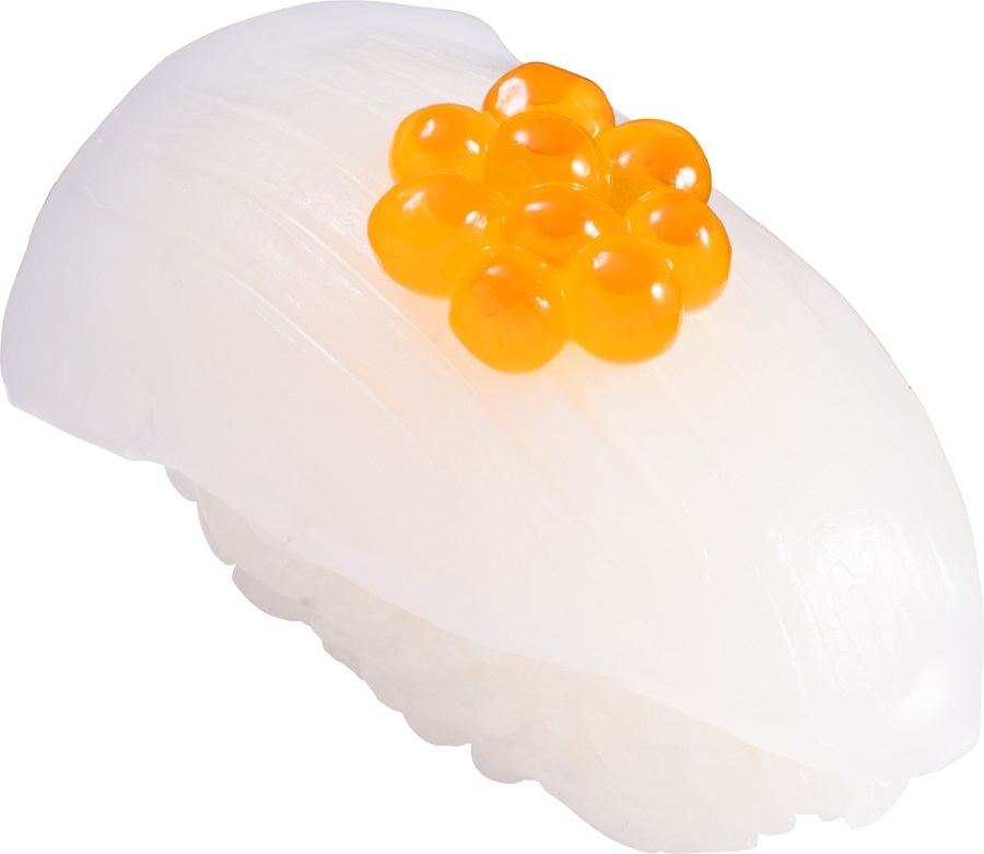 もっちりした食感、濃厚な甘みと旨みの甲いかに、いくらを添えたお寿司。