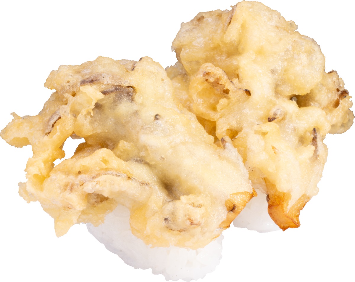 独特の香りと旨み、歯ごたえが楽しめるまいたけ天の握りも登場。