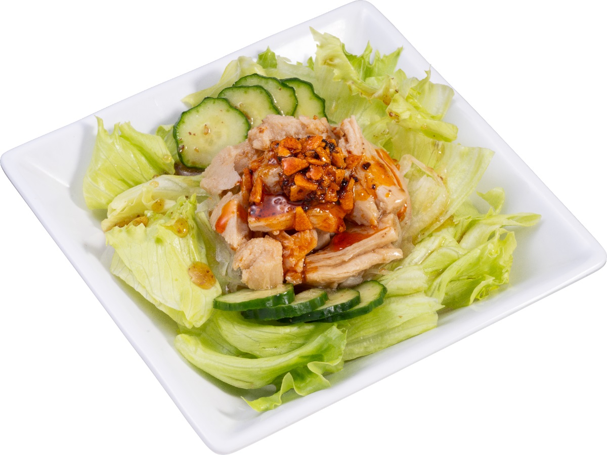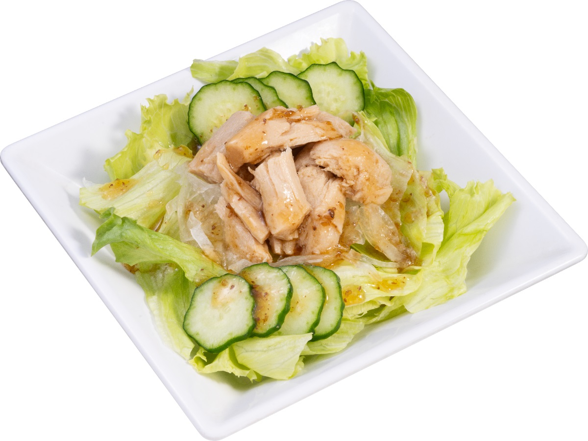 大豆ミートのサラダは、棒棒鶏風の味付けも登場。