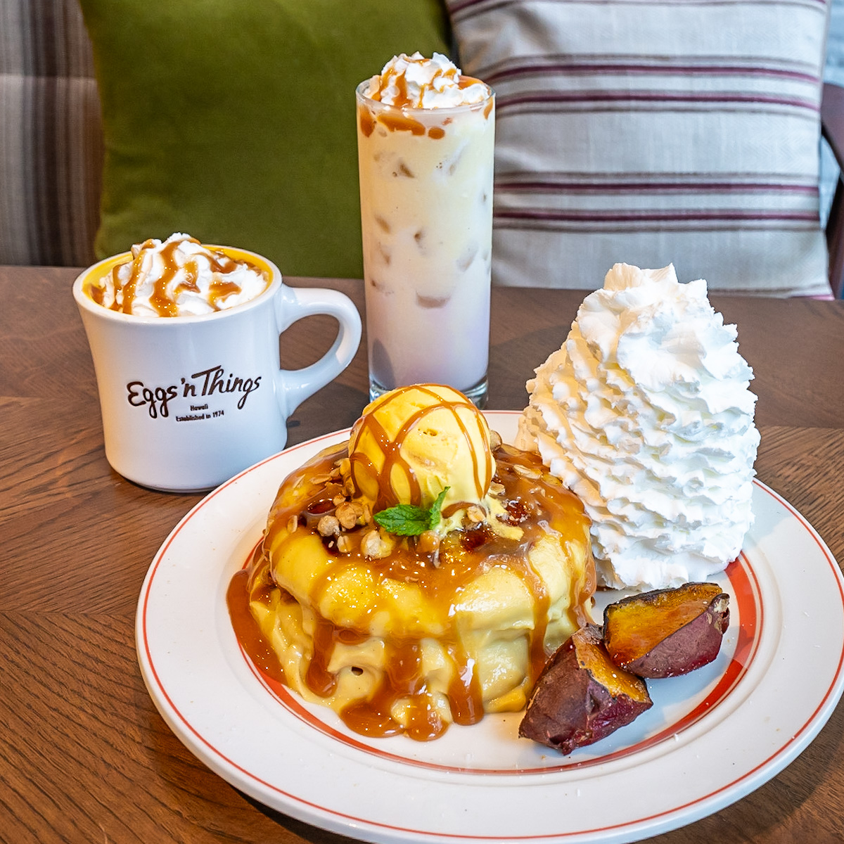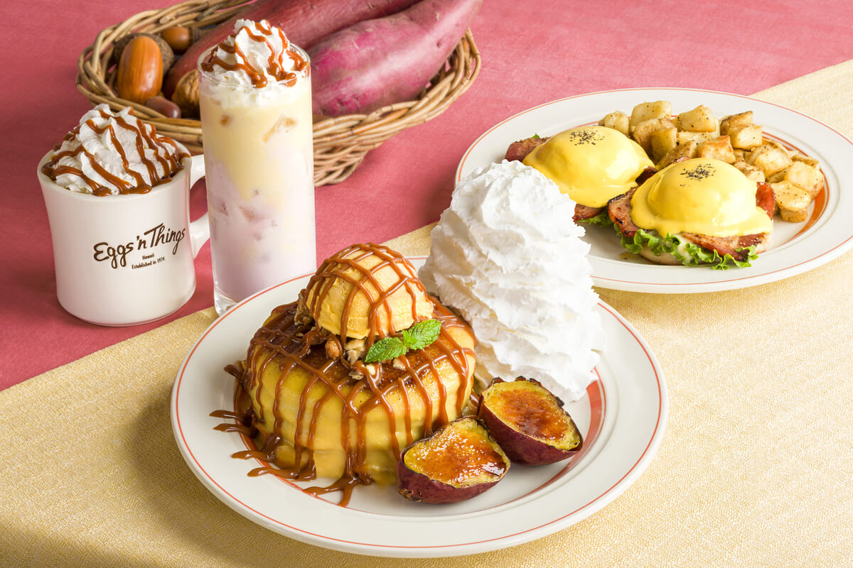 ハワイアン料理を提供するカジュアルレストラン「Eggs ’n Things(エッグスンシングス)」から、さつまいもを使ったブリュレパンケーキ「スイートポテトと焼き芋のパンケーキ」が登場!