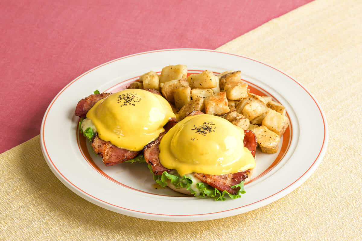 人気のエグスンベネディクトとメープルベーコンの組み合わせを楽しめる「メープルベーコンのエグスンベネディクト」