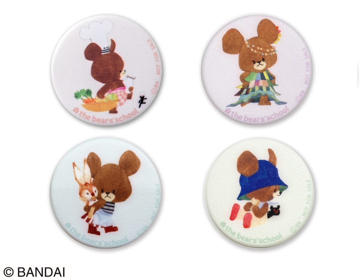 期間中、「#くまフェス in 銀座三越 2023」会場にて、「くまのがっこう」グッズを1会計につき2,200円(税込)以上購入された各日先着50名に「布製缶 バッジ」全4種のうちランダムで1個プレゼント!