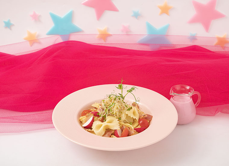 「アイ」をイメージした、かわいいピンク色のクリームパスタ。