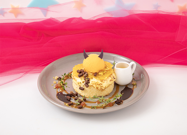 カラメリゼしたカスタードにオレンジの酸味とチョコレートの甘さがマッチしたパンケーキです。