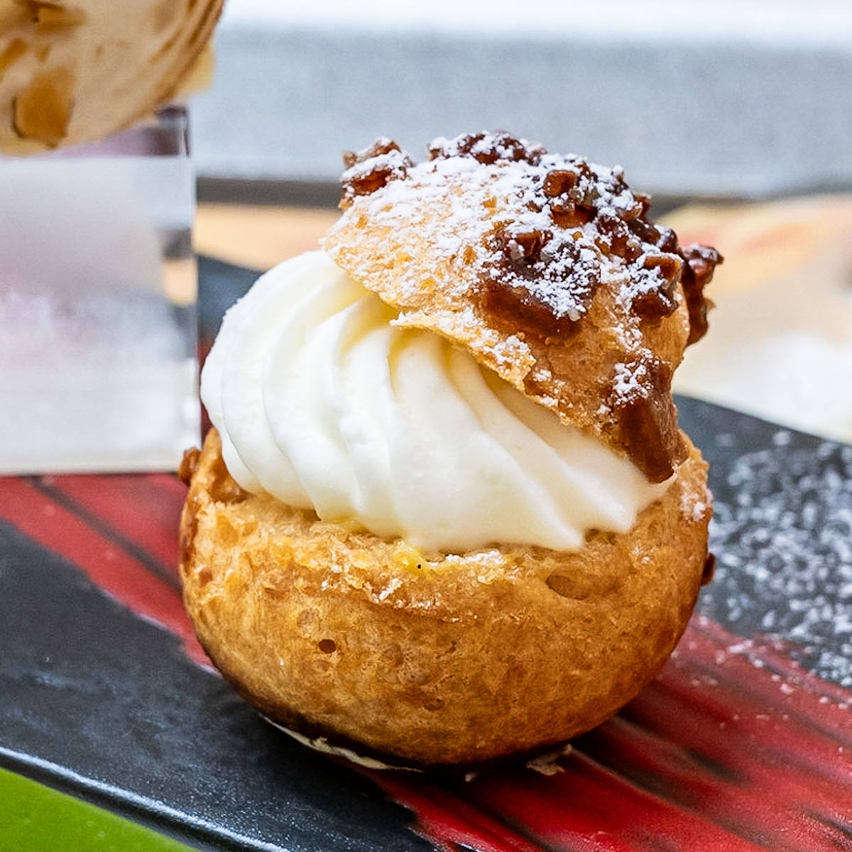サクサクのシュー生地にマダガスカル産のバニラ香るカスタードクリームと軽やかで口どけなめらかなククレーム・シャンティーを合わせてあります。