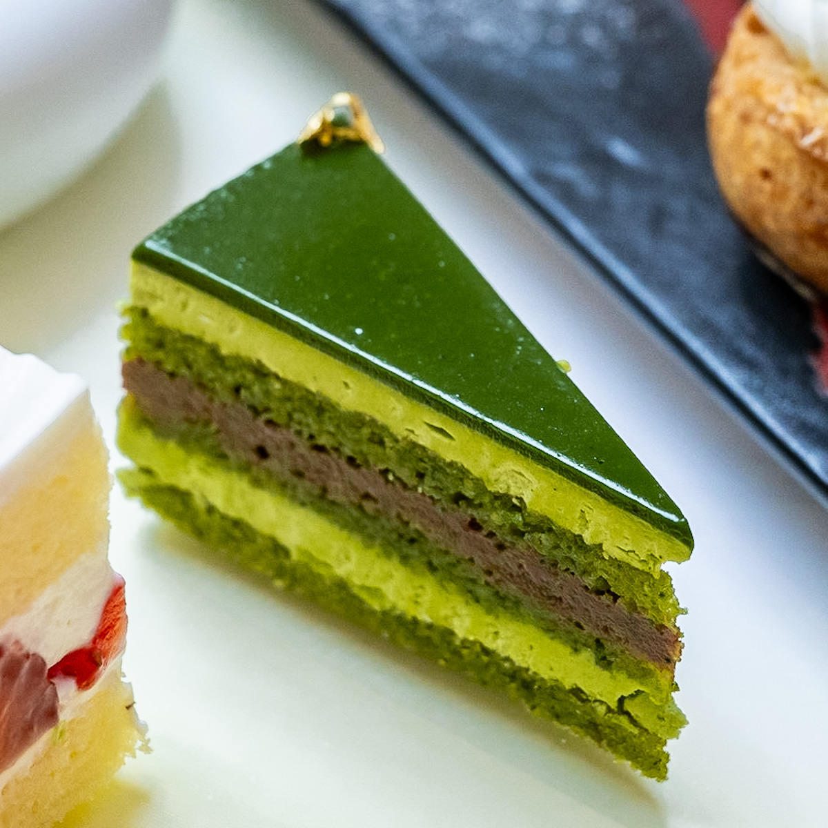 祇園辻利抹茶を使った濃厚なオペラケーキ。