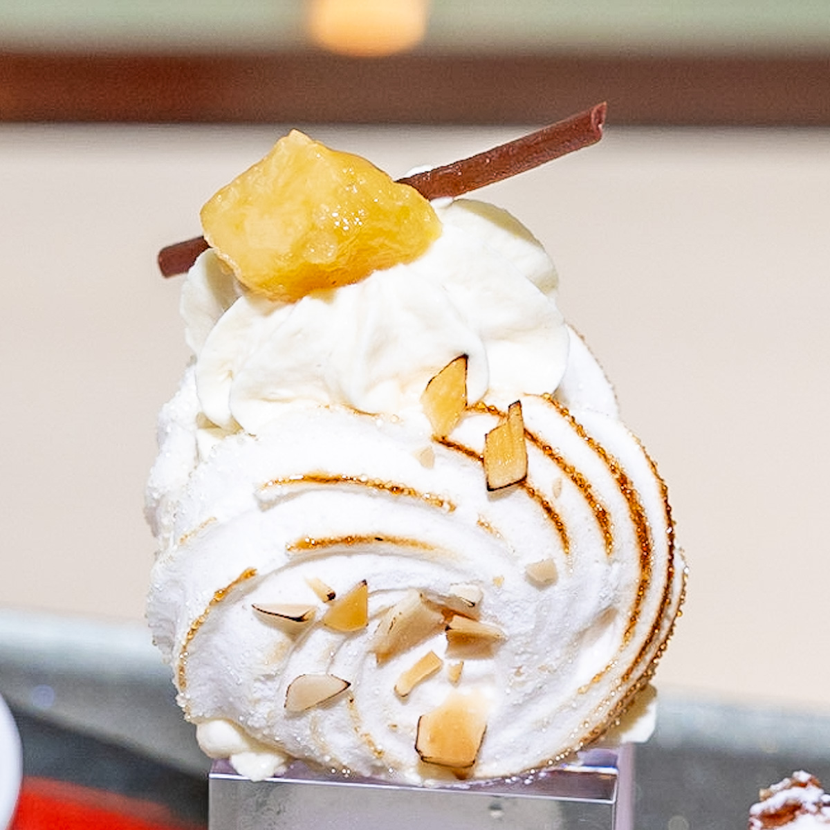 メープルのクリームと胡椒パイで秋らしさをプラスしています。