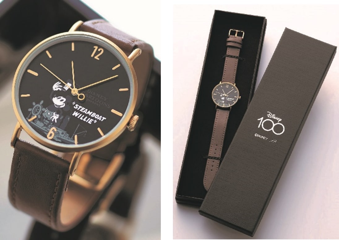 「ミッキーマウス」のスクリーンデビュー作品『蒸気船ウィリー』を文字盤にデザインした腕時計。
