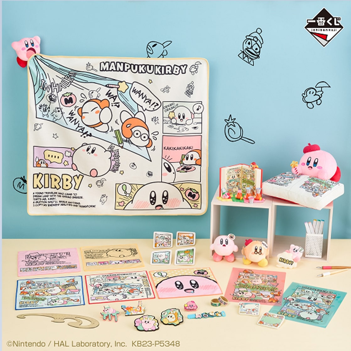ぬいぐるみ付きブランケットや、ベレー帽を被った「カービィ」ぬいぐるみなど、コミックテーマならではのコミカルで楽しいグッズが豊富に展開されます☆