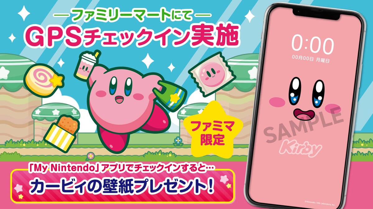 2023年9月26日(火)~10月16日(月)の期間中にファミリーマートの店頭で「GPSチェックイン」を実施すると、限定デザインの「星のカービィ」の壁紙がもらえます☆
